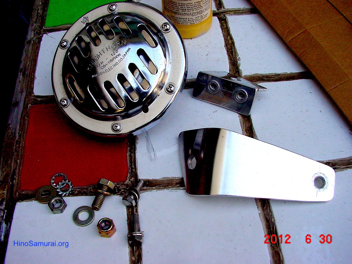 Knight KM-120ホーン (純正) のバンパーへのステー (2個構成) とキルスイッチの取付ベース (シリコンでシールを作成)