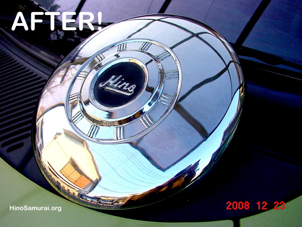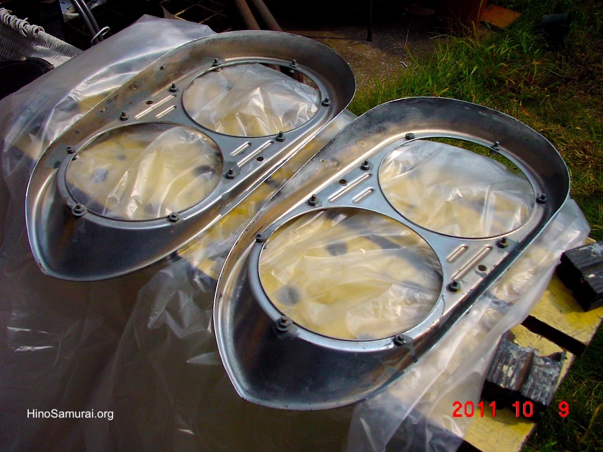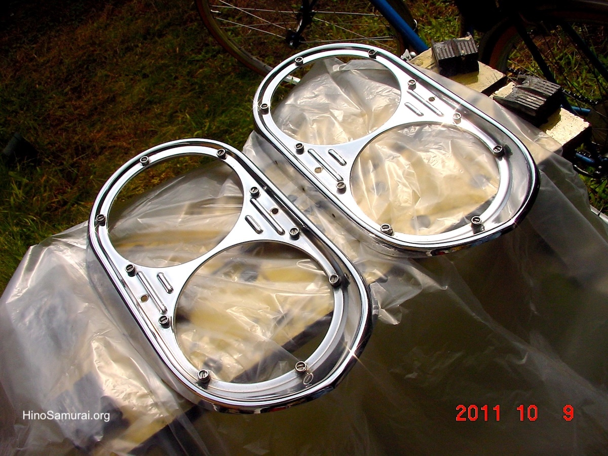 フロントライトのグリル、1966年時代の当時ものであるが磨けば汚れも綺麗に落ち輝きを取り戻す!