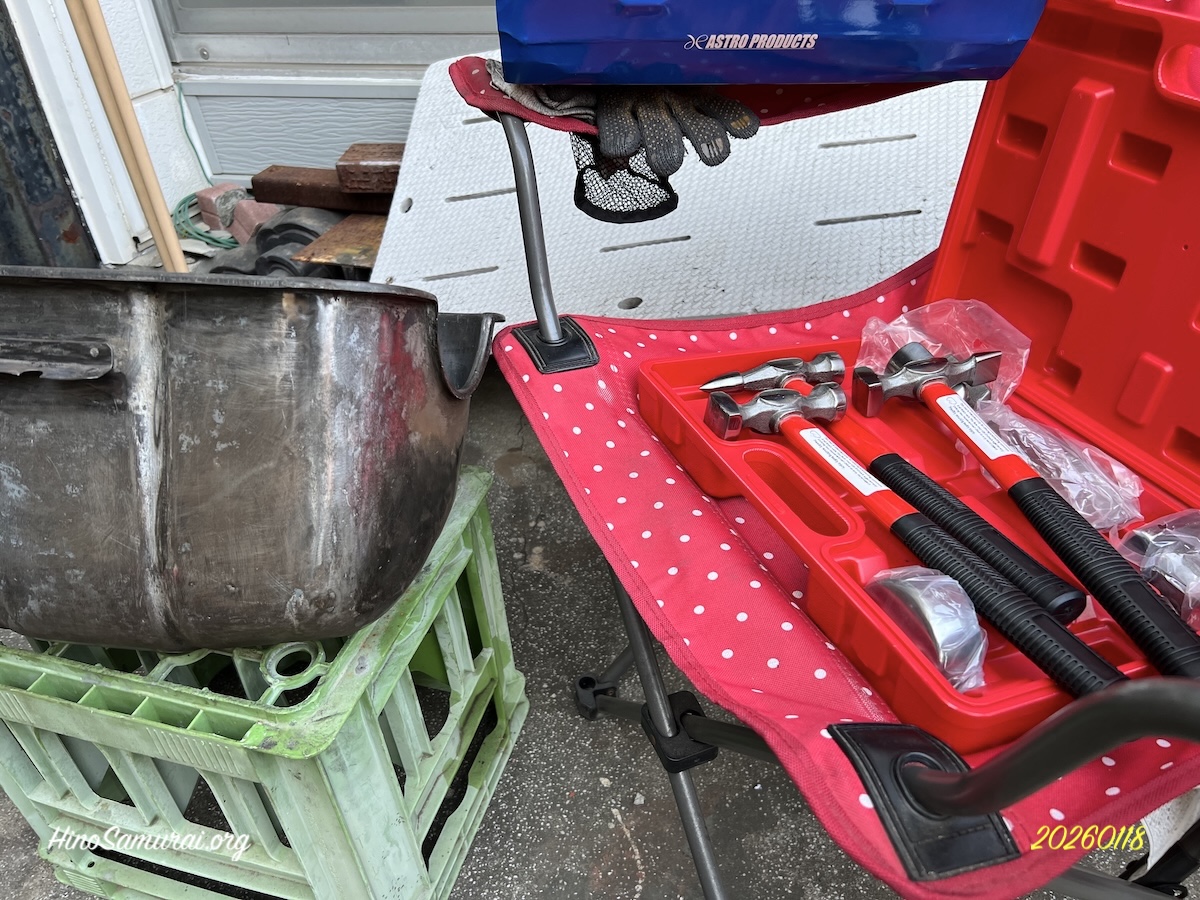 オイルパン、先般、凸凹の修正、最終的な細部のツメをと、しかし更なる努力の必要を感じました。道具のせいにしたくないのですがこれ以上は一般的なハンマーや木片では不可と判断しました。