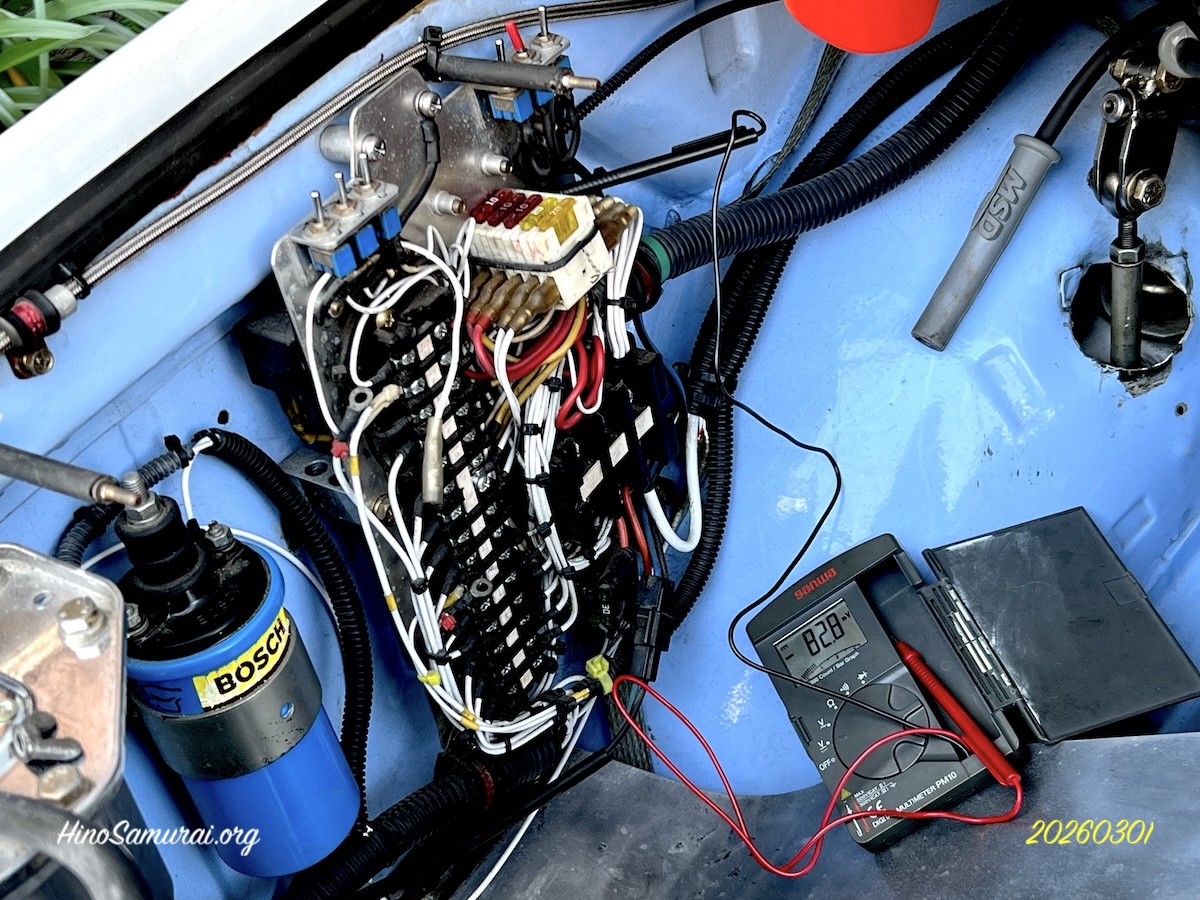 2026.3.1 公道復帰10年、経年劣化修復プロジェクト (172) – ディスビューの仮取付 (2) 先週のディスビュー本体の取り付けに続いて、配線の切り替え、すなわちポイント式点火方式に配線を変更することです。 画像のように2013年型新造コンテッサは電装系の大幅な変更を試みました。60年以上前の日野標準の配線と決別して、80年代のトレンドやテクノロジーをベースに新たな配線を自分なりに考えました。 それはそれで正解でしたが大きな忘れ物をしていました。やらねばといつも思っていた配線図の清書、すなわち手書きのポンチ絵のようなものからパソコン仕様のCAD図にすることでした。 反省をする間もなく問題発生、肝心な変更手順が年老いて記憶から消えてるのです!手書き図を出してみたものの15年も経てかすれて判読不能、万事休す!本日はここまでとしました!