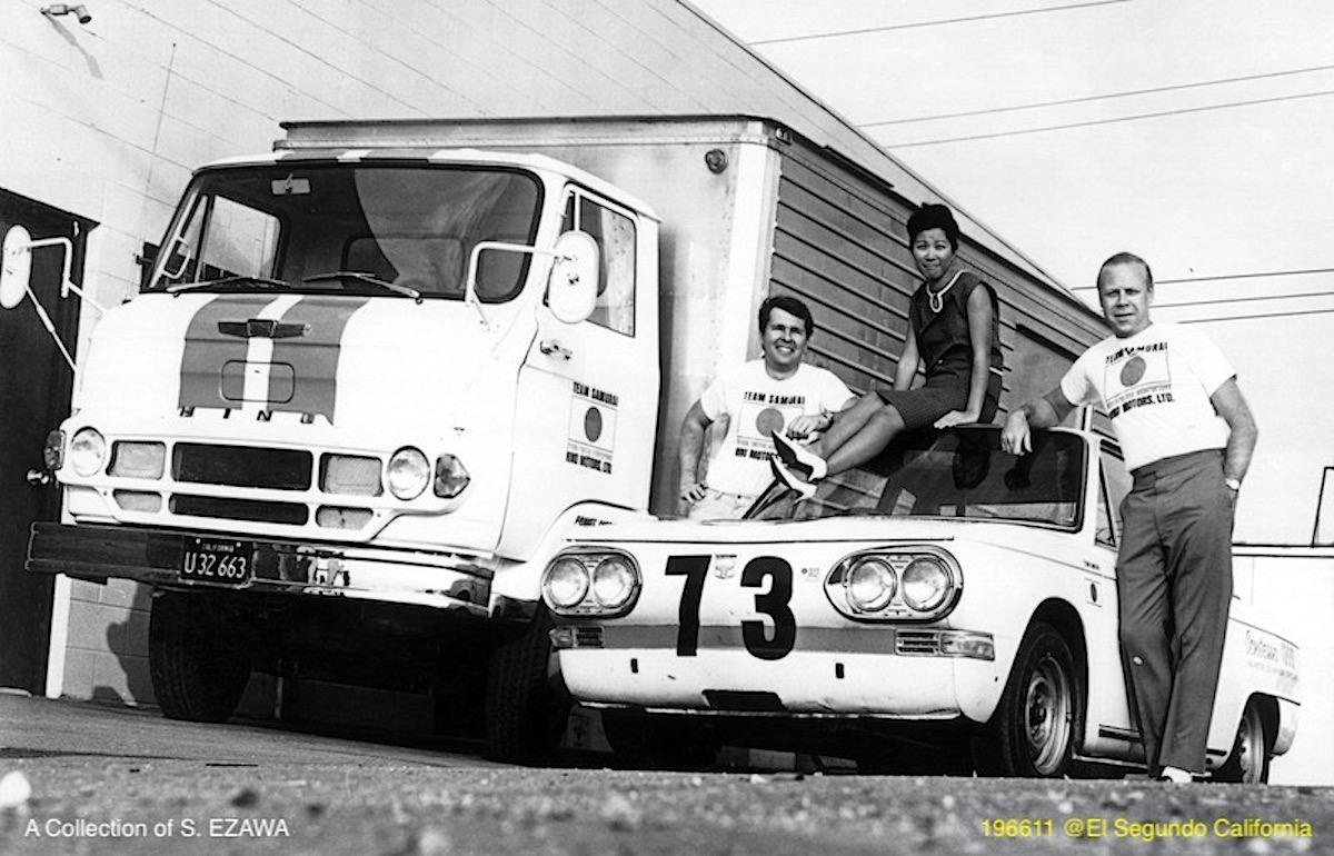 日野自動車工業(株)は1966年(昭和40年)当時、技術の挑戦の場として積極的にGTプロトの開発に続いて、輸出を進めるためにピート・ブロックとチーム・サムライを結成しコンテッサ1300クーペで米国西海岸を中心にセダンレースに積極的に参戦していた。その2台のコンテッサのボデーに「いざ征かむ、めにものみせん、青い目の大和魂、コンテッサ駆り」と「先陣は我がコンテッサ、青い目の大和魂、手綱さばいて」と描き、打倒ミニに燃えていた。