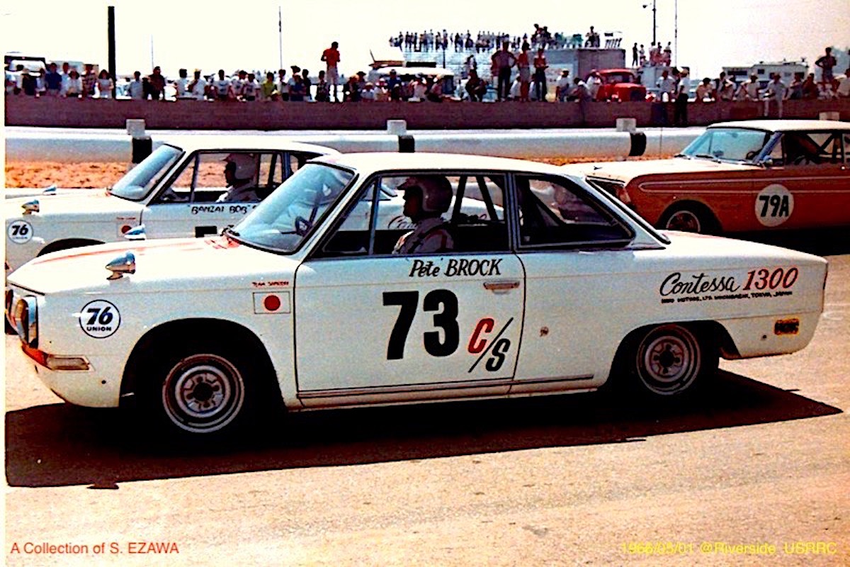 1966年 (昭和41年) 8月14日、日野自動車工業株式会社(以下、日野)の心血をそそいたJ-494こと日野プロトは富士スピードウエイで緒戦を飾った。偶然にも同じ日、カリフォリニアはロサンゼルス郊外のリバーサイド・インターナショナル・レースウエイの6時間耐久レースで日野の米国に於けるワークス、”チームサムライ”のピーター・ブロック(以下、ニックネームのピート)と相棒のロバート・ダンハム(同、ボブ)はコンテッサ1300クーペでその名に恥じない戦いを進めていた。