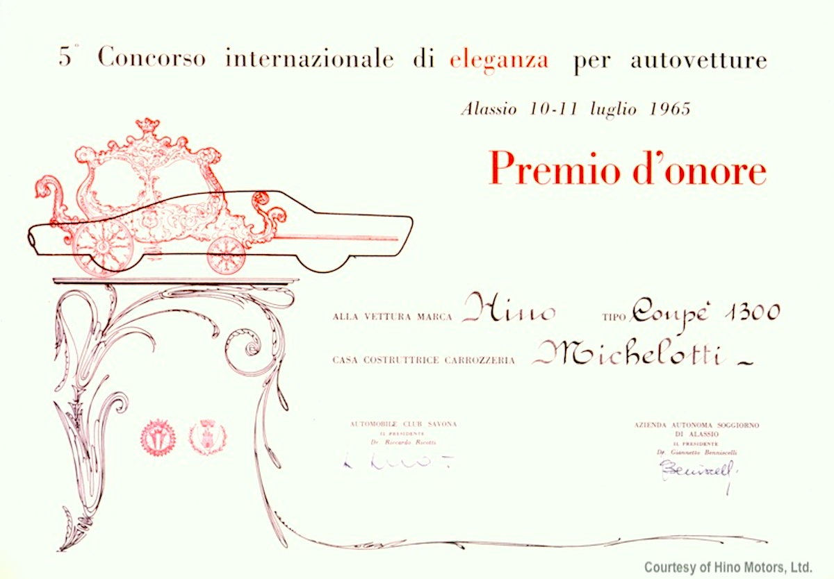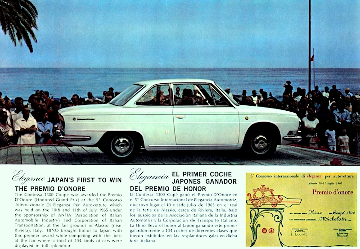 日野の前身、ガス電時代の星子勇に始まった乗用車造りの夢は、それから30年余り後、ルノー4CVでの暗中模索の技術習得とコンテッサ900での寝食を割いての実践を経て、コンテッサ1300で開花する筈だった。しかし、戦後間の間もない時期の自動車産業復興のための海外からの技術習得政策も国の指導、乗用車輸入自由化をひかえての業界再編成政策も国の指導だったことはあまりにも皮肉であった。その意味でわずか2年7カ月で幕を閉じなければならなかったコンテッサ1300は、“Una Tragedia Della Contessa = 悲劇のコンテッサ” と言わざるを得ない。