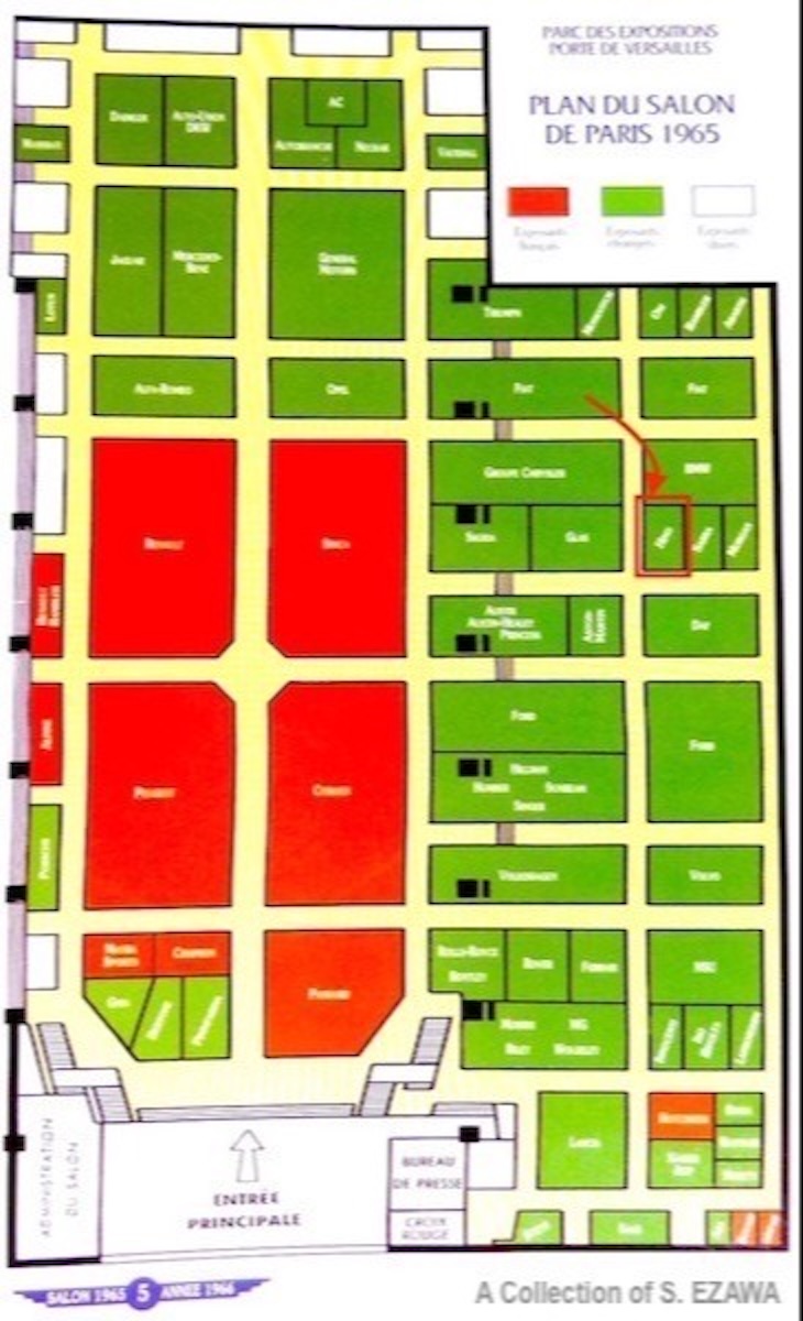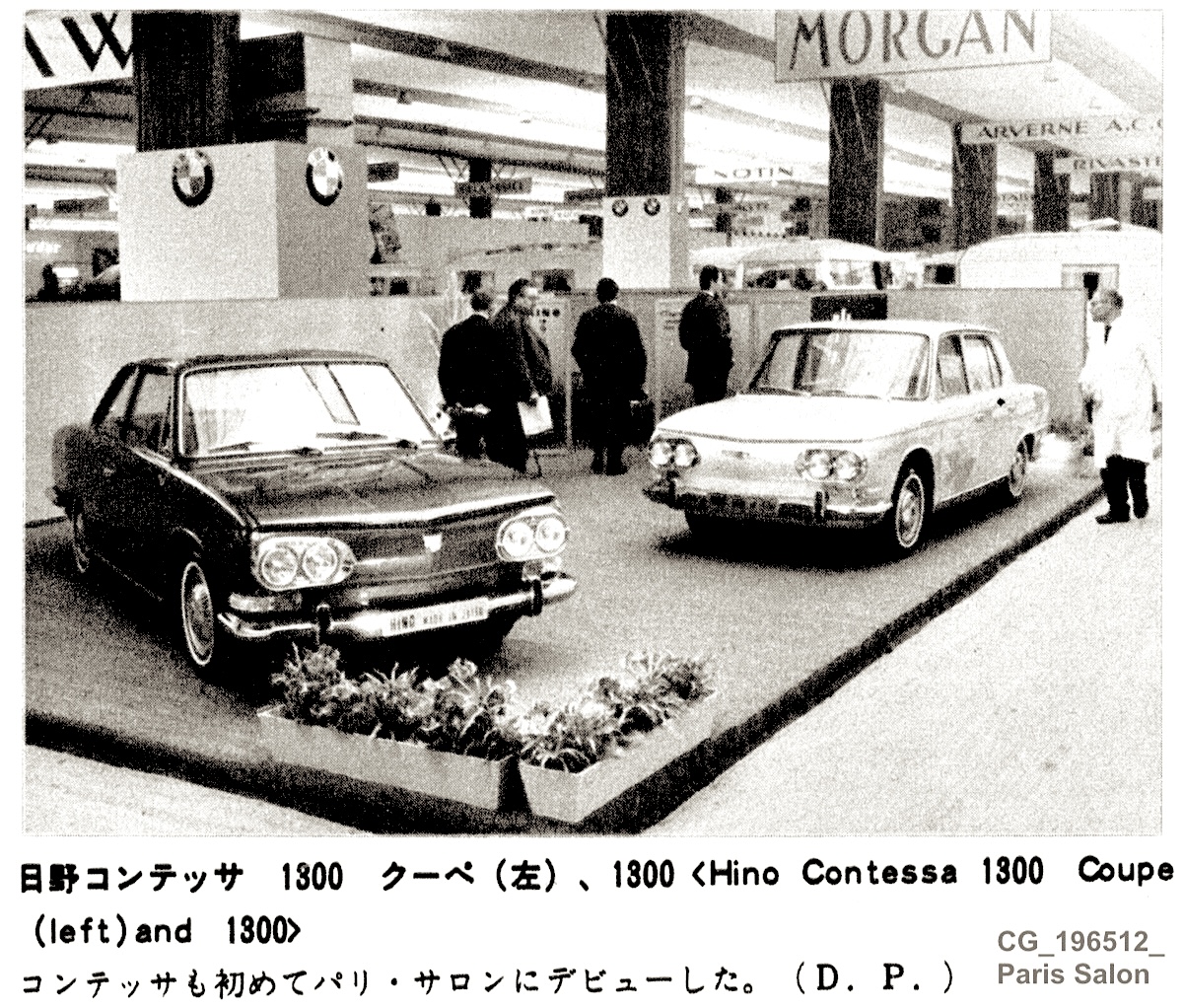 そして1965年のハイライトはやはりここのテーマである第52回パリサロンです。何といっても前年の1964年含めも当時の日本のOEM各社は日野自動車以外 (1965年度はホンダが出展) 、この場には居なかったのですから!しかも、フラグシップというべきコンクールで名誉大賞を得た “コンテッサ1300クーペ” が出展できるようになったのです。